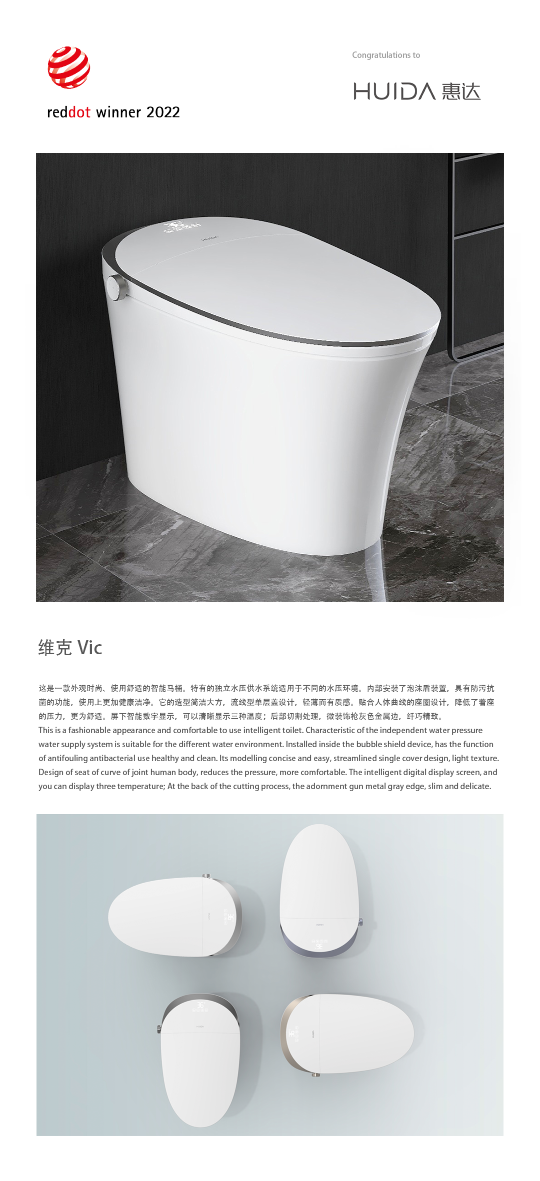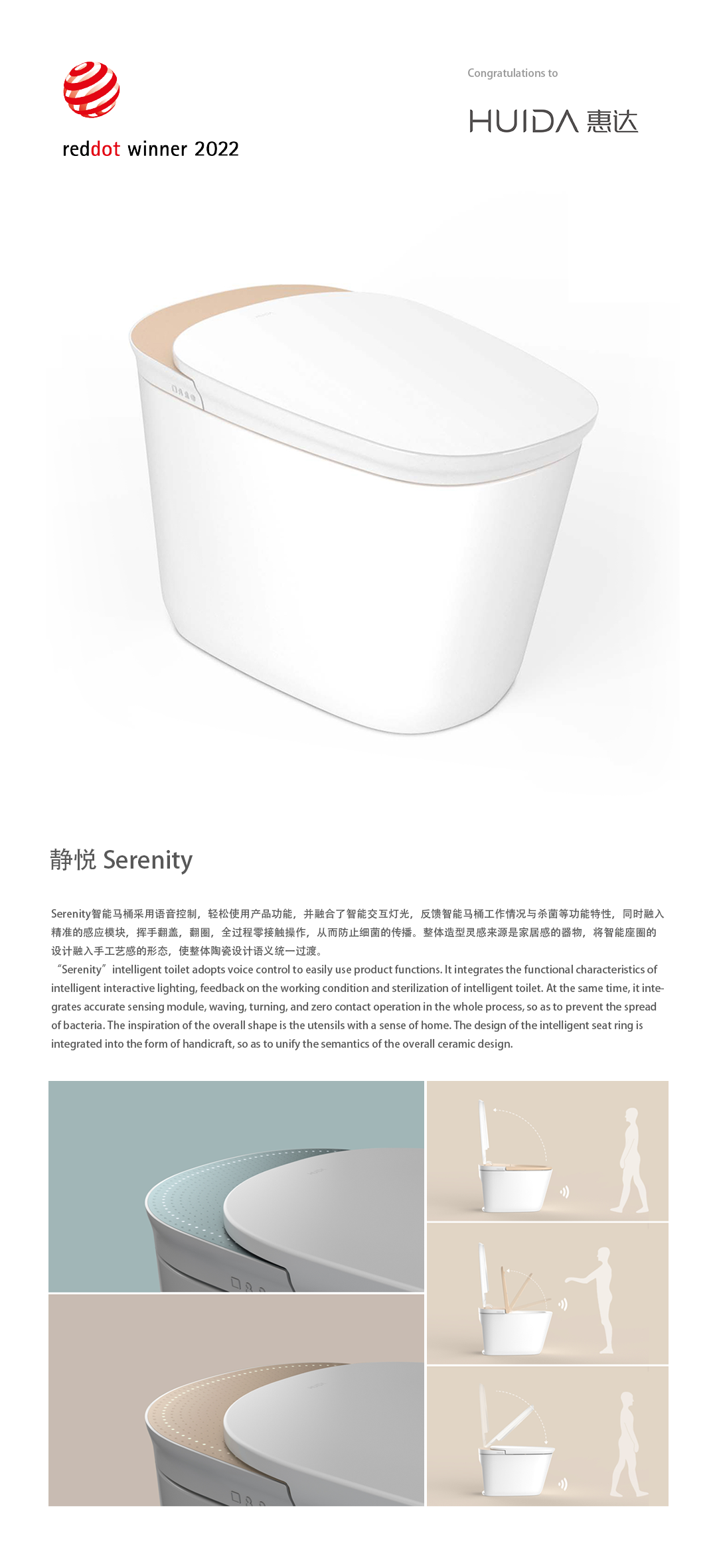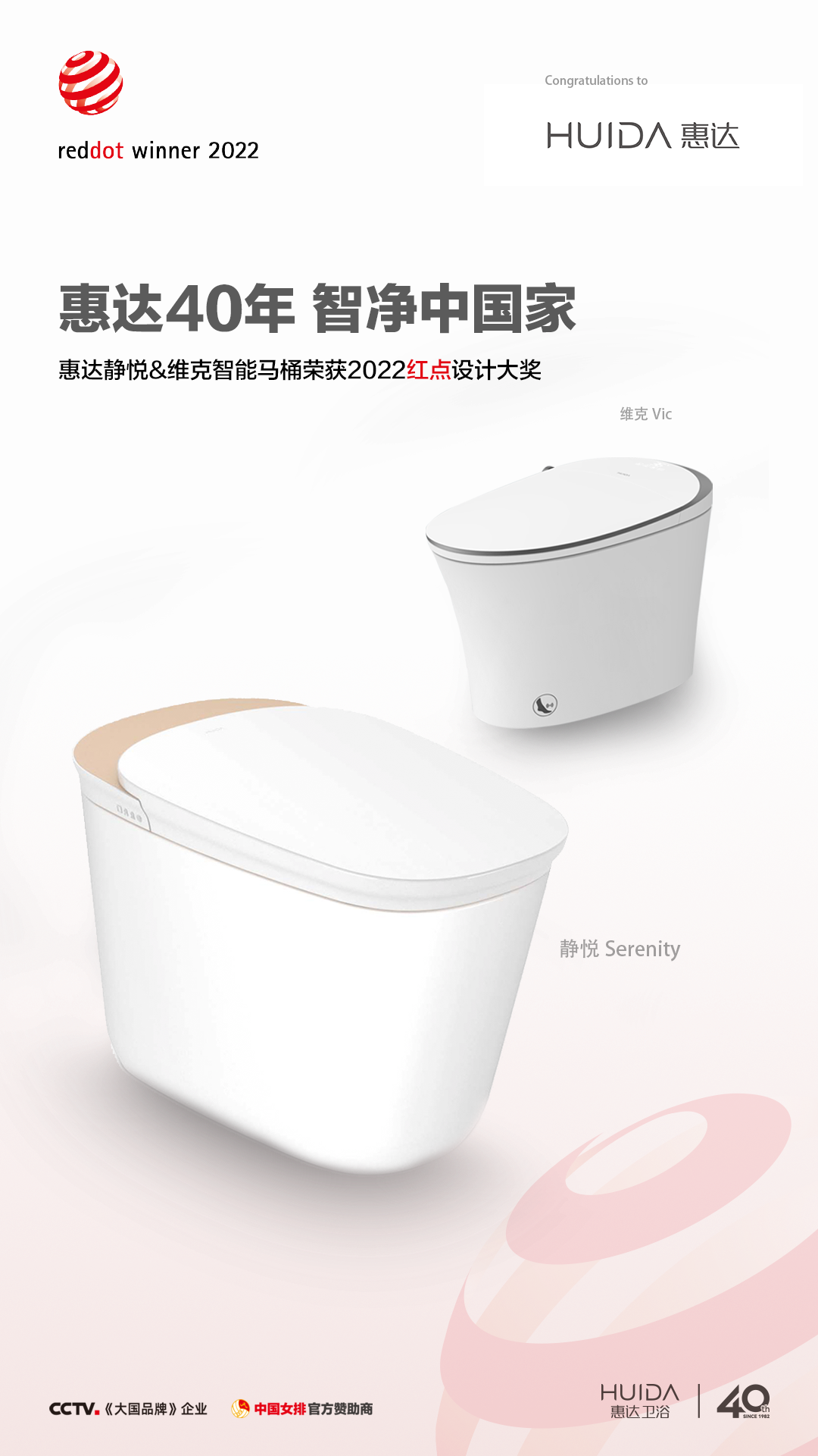 近日,惠达卫浴旗下的静悦智能马桶(“Serenity”intelligent toilet)和维克智能马桶(Vic smart toilet)喜提素有“工业设计奥斯卡”之称的红点设计大奖。